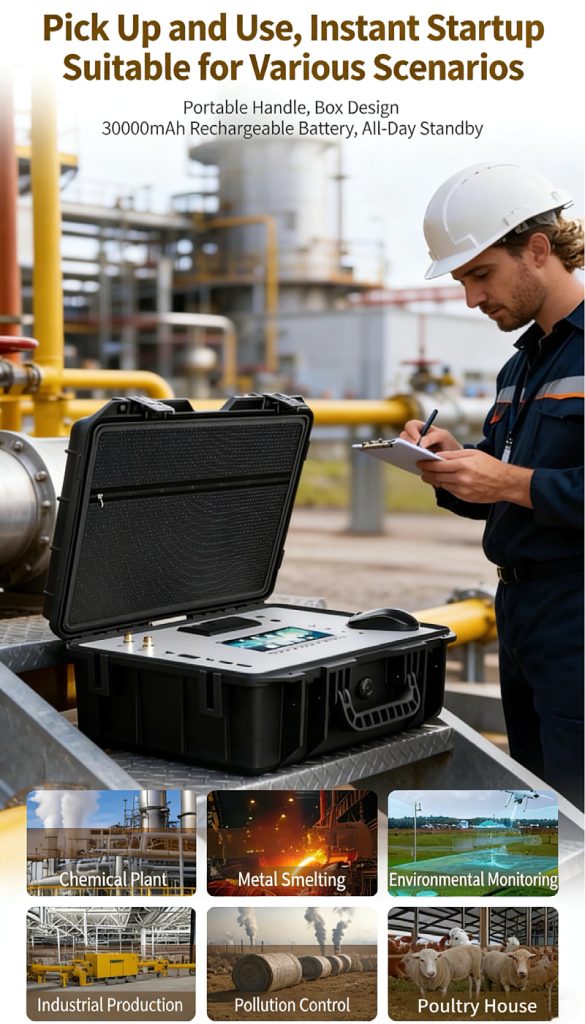 It can simultaneously detect 1-24 types of toxic, harmful, flammable, or explosive gases, leveraging modular imported sensors to ensure high-precision measurements. The device also supports 4G connectivity for real-time data sharing, customizable detection parameters, and features an intelligent integrated interface (with a built-in display and Bluetooth mouse) for intuitive control.